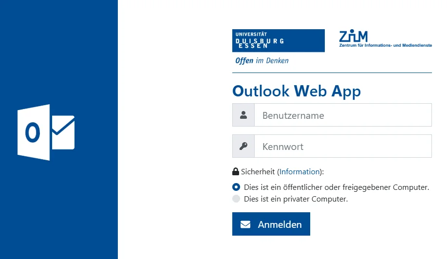 - Rufen Sie webmail.uni-due.de auf